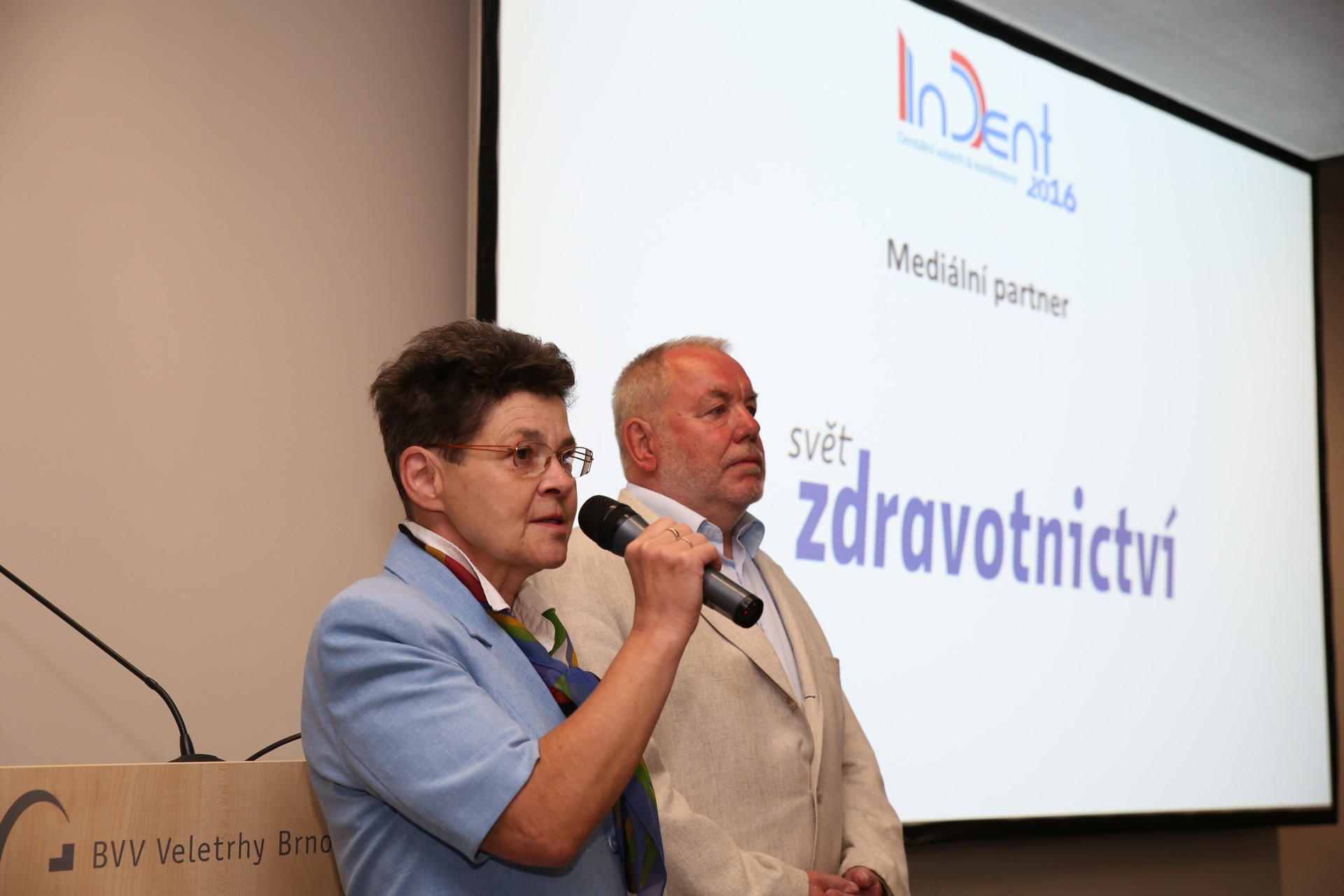 V pátek 27. května po deváté hodině proběhlo v sekci zubních lékařů zahájení přednáškového programu InDent 2016. Na zahájení promluvili Ing. Věra Menšíková, ředitelka projektu InDent, a MUDr. Radek Peřina, předseda Oblastní stomatologické komory Brno. V projevech byl zdůrazněn pozitivní vývoj akce po přesunu do Brna a nárůst počtu účastníků konference, témata přednášek přínosná pro praxi a společenský aspekt tohoto odborného setkání. Významný podíl slovenských účastníků potvrdil naplňování koncepce veletrhu i konference InDent jako česko-slovenské dentální vzdělávací a veletržní akce.