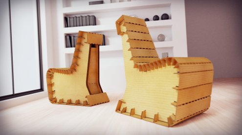 Cílem práce bylo vytvořit pohodlné a bytelné křeslo z tenké pětivrstvé lepenky. Křeslo drží pohromadě díky zpětným zobáčkům umístěných v bočnicích. Přední část je tvořena z papírových lamel, které jsou v sedací části hustější. V zadní části je navíc držadlo, které umožňuje snadnou manipulaci.
