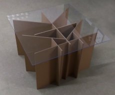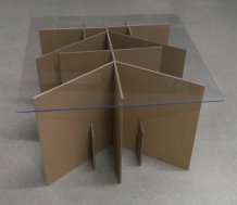 Konferenční stolek, jehož ústředním prvkem je čínský znak čaje, je určen do interiéru k příjemnému posezení u čaje. Autorka využila pětivrstvé lepenky, z níž je vyřezáno osm částí, které se do sebe zatlačí a vytvoří tak znak čaje. Jako stolová deska je použito plexisklo.