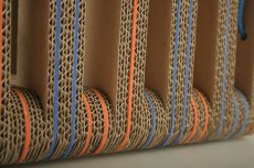 Materiál: pětivrstvá vlnitá lepenka, barevná pryž, papírové tubusy