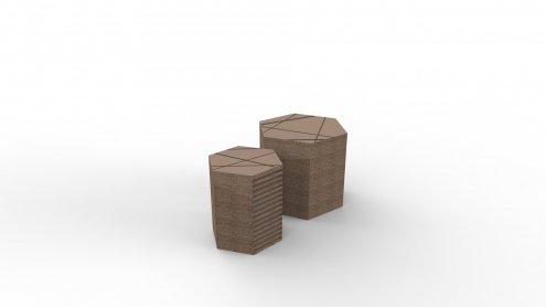 Double hexa je set šestiúhelníkových sedacích prvků určených do interiéru. Autorka se inspirovala skládacím systémem matrjošky. Prvky jsou vzdušné a snadno přenosné díky žebrům. Po obrácení je lze využít jako odkládací prostor, rozměrově jsou přizpůsobeny ergonomii dospělého člověka i dítěte. Hmotnostní kategorie 90–100 kg.