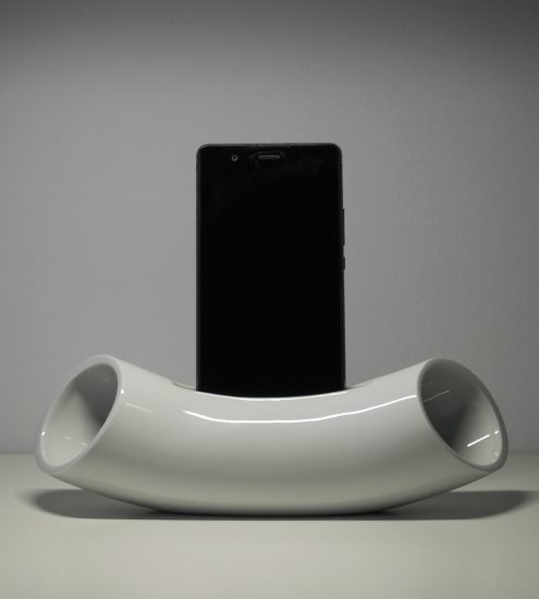 Porcelánový reproduktor pro mobilní telefon zesílí a upraví zvuk díky použitému tvaru a materiálu, bez baterie a bez napájení. Velikost slotu na mobilní telefon je univerzální.
