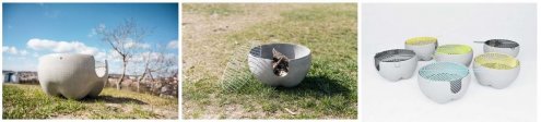 Stolní gril Betony je navržen pro milovníky grilování, kteří nemají dostatek místa na klasický velký gril. Organické linie grilu vycházejí z tvaru jablka. Průřez zajišťuje přívod vzduchu k palivu, kterým může být dřevěné uhlí nebo brikety, dávající pokrmu tu pravou chuť navoněnou kouřem. Díky použití tenkostěnného betonu působí gril odlehčeně, pět stojných bodů zajišťuje stabilitu a bezpečnost při používání.